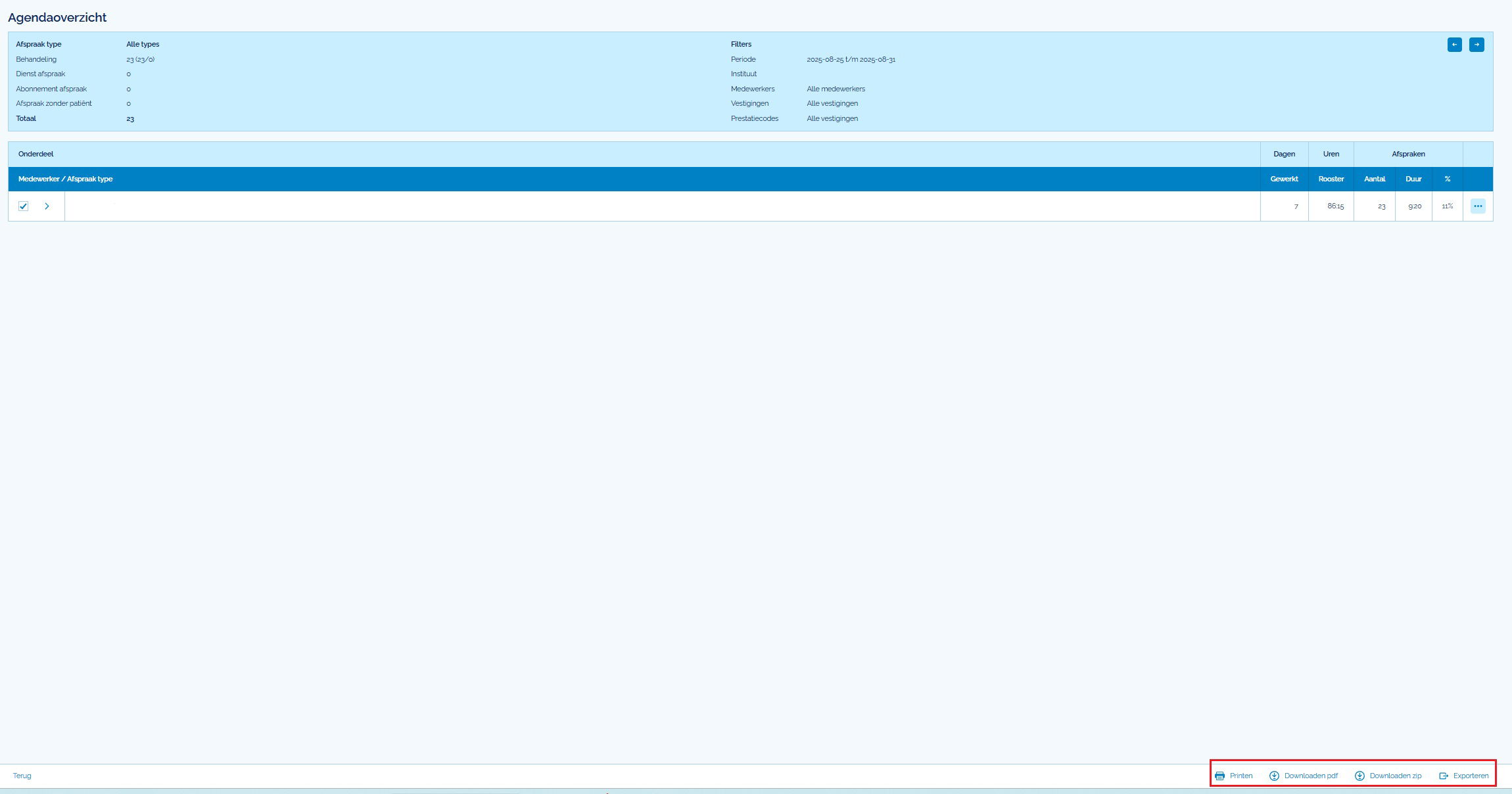 Waarschuwing bij LDF en SKF Als je gegevens aanlevert aan LDF of SKF en je vinkt de vakjes aan, krijg je nu een waarschuwing. Dit voorkomt dat je per ongeluk data verstuurt zonder geldige registratie bij LDF/Nivel of SKF. Sneller plannen van afspraken Bij het maken van een nieuwe afspraak springt de cursor automatisch terug naar het veld ‘Patiënt’. Dat werkt sneller, vooral als je meerdere afspraken achter elkaar plant. Toekomstige afspraken printen In de agenda kun je nu makkelijk toekomstige afspraken downloaden. Klik op de knop ‘Download toekomstige afspraken’ en er wordt een PDF gemaakt die je direct kunt printen.Nieuw