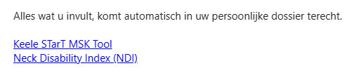 Naam link van online in te vullen klinimetrie Patiënten zien nu de naam van de klinimetrie in plaats van alleen de tekst vragenlijst 1 en zo verder: